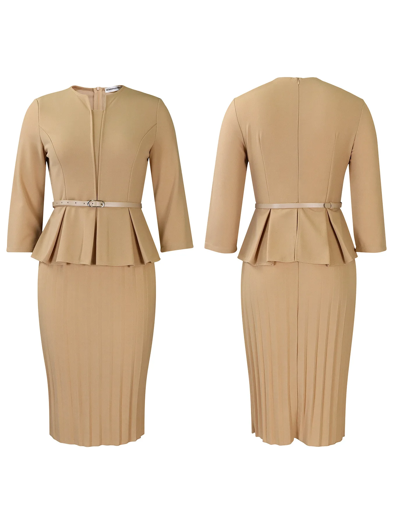 Elegant Office Dress Latest Design V-Neck High Waist Dress Slim Pencil Ruffle Casual Style Oversize Career Dress